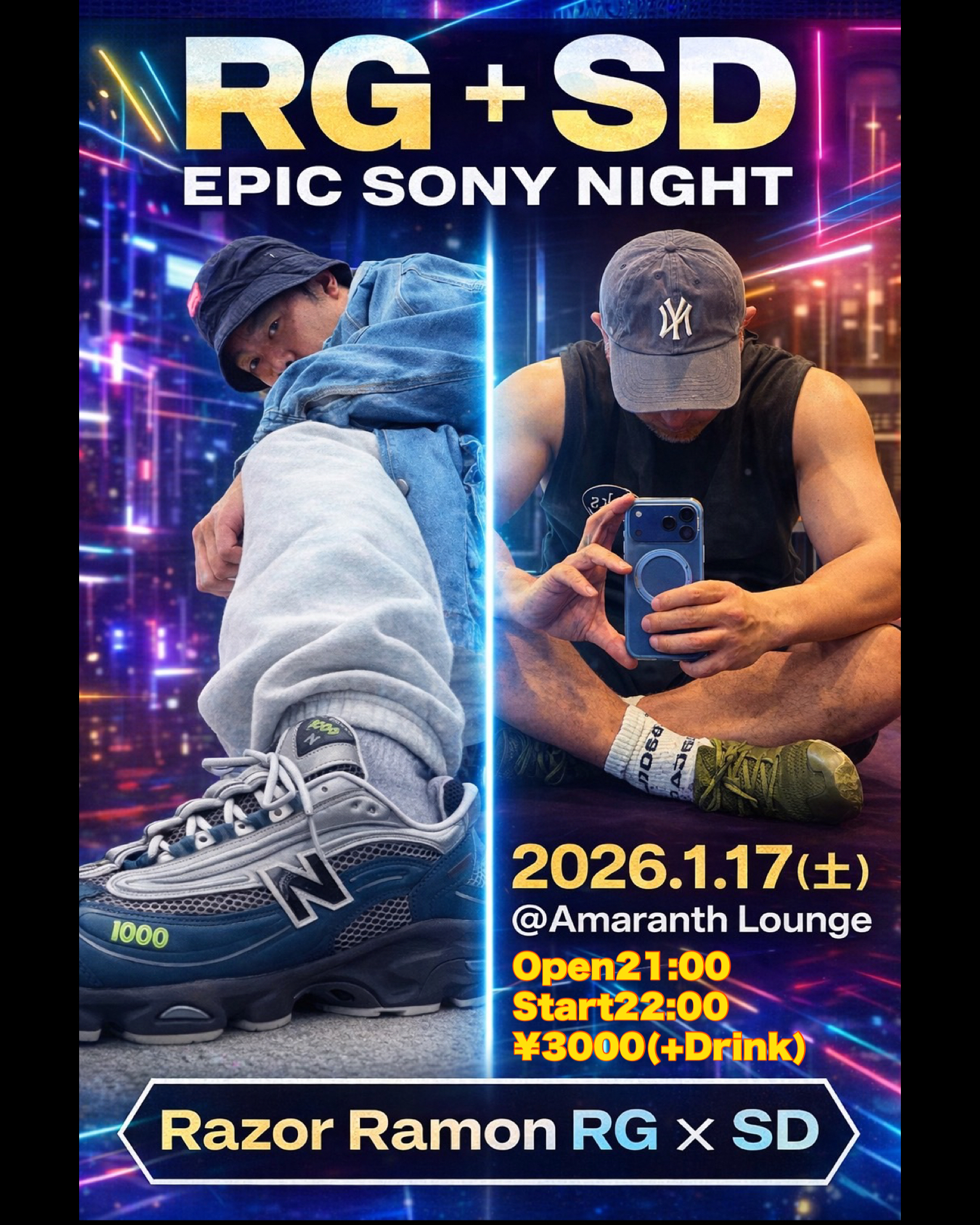 ★DJ [SD] & [Razor Ramon RG]のゴツめな兄ィさん2人が、我らが青春ヒットソングの数々をオールナイト・ロングでオールナイト・プレイ!すっかりオトナの皆様を再びキッズに戻して朝日の当たる路上に放り出します!