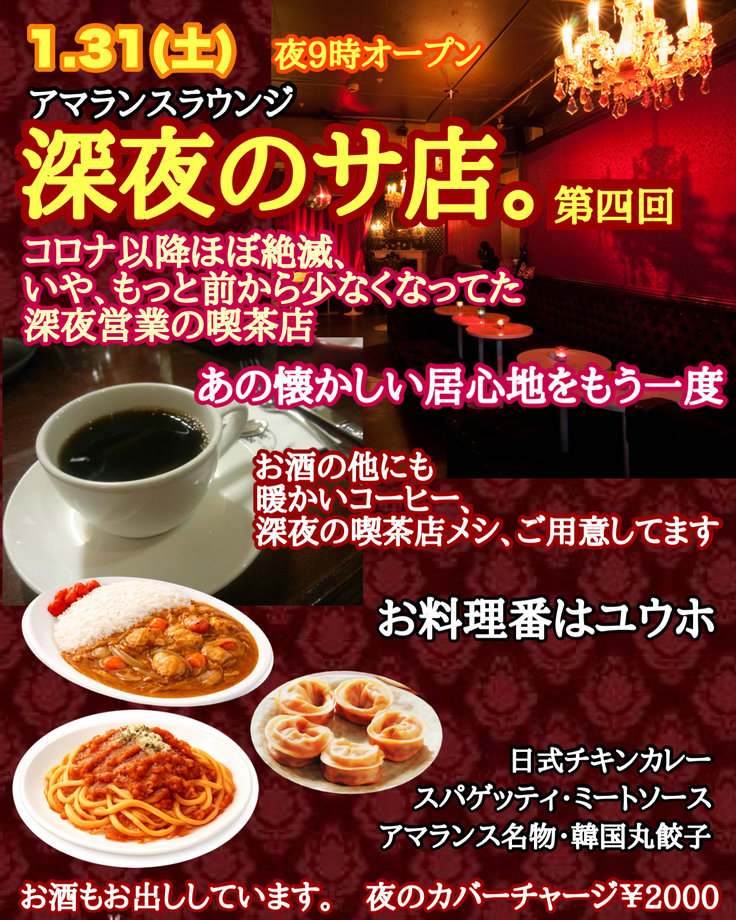★今夜土曜日1月31日のアマランスラウンジは[深夜のサ店。]第四回。